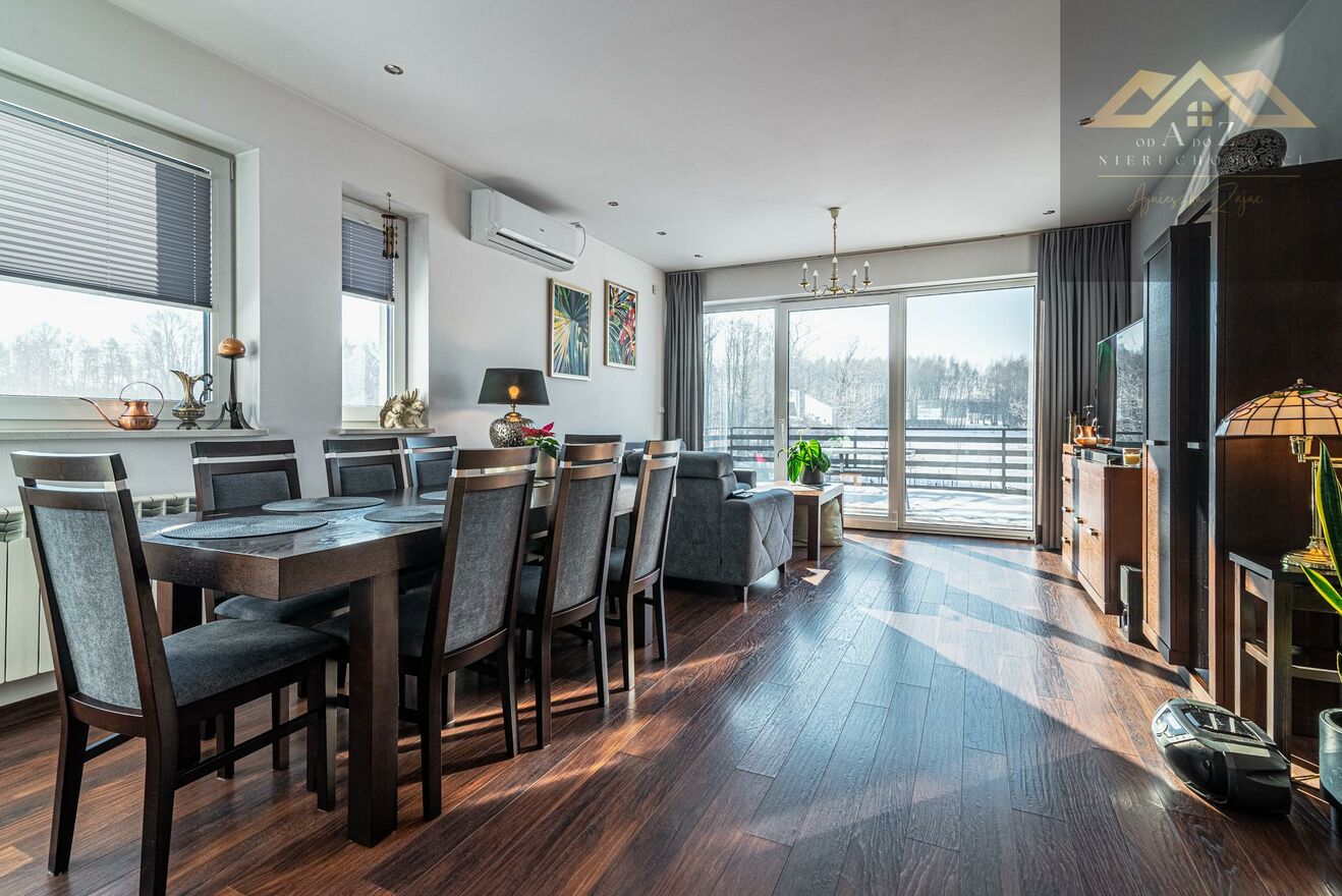 * przestronny salon z częścią jadalnianą i wyjściem na taras,
