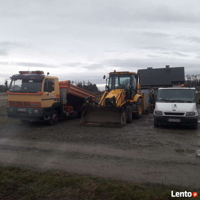 Usługi mini koparką 3t koparko ładowarką JCB 3cx, orazwywrotki o ładowności 3,5t oraz 7,5t